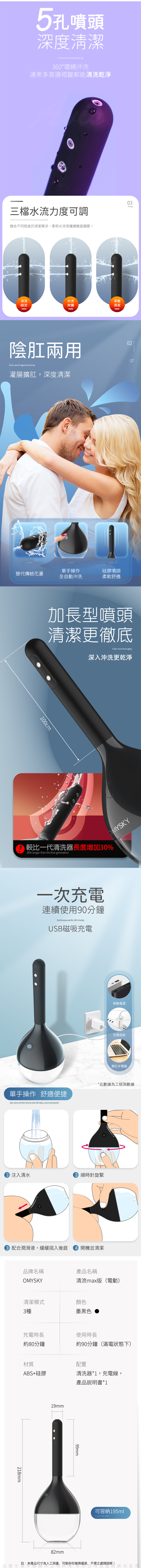 品牌名稱:omysky 清流-電動版 陰肛兩用清洗器