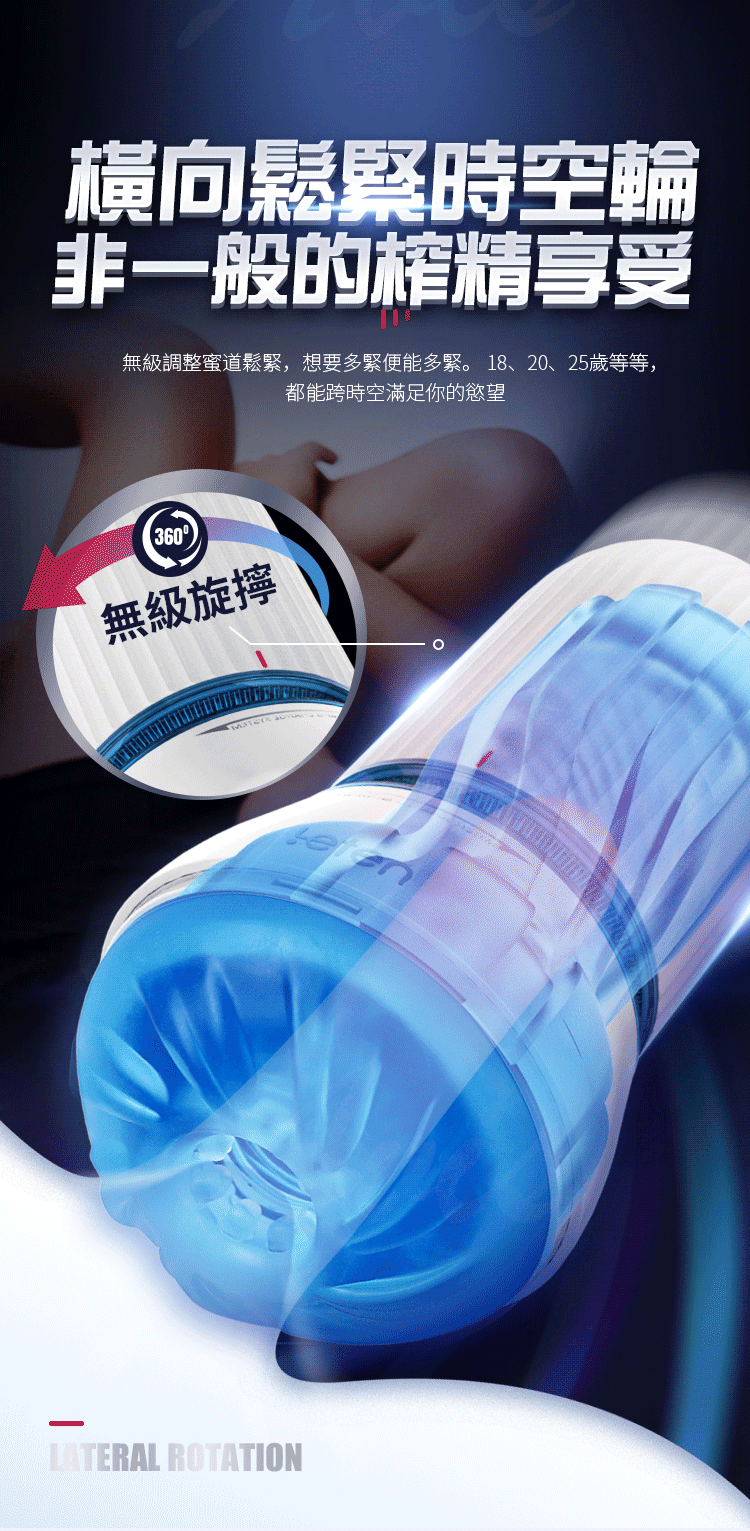 時空扭轉飛機杯旋轉+氣控吮吸榨精雙快感,時空扭轉杯的雙輪設計,無級調節內部緊度與氣壓,同時享受空氣吸吮,與縮陰壓榨的雙重快感。