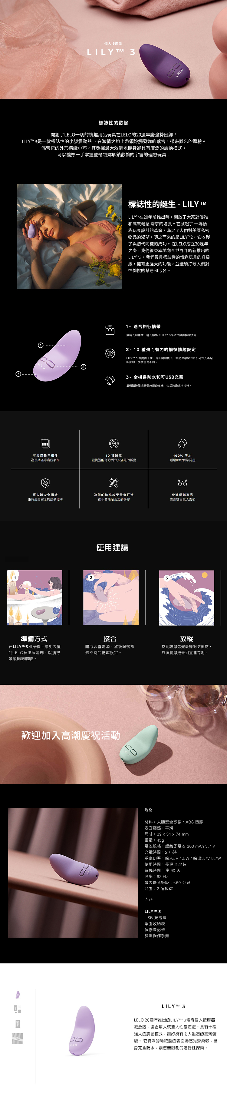 LELO 20週年推出的LILY™3傳奇個人按摩器紀念版,適合單人或雙人性愛遊戲。 2023年期間以50%的折扣優惠獨家供應,具有十種強大的震動模式,讓妳擁有令人難忘的高潮體驗。 它特殊的絲絨般的表面觸感光滑柔軟,機身完全防水,讓您無限制的進行性探索。