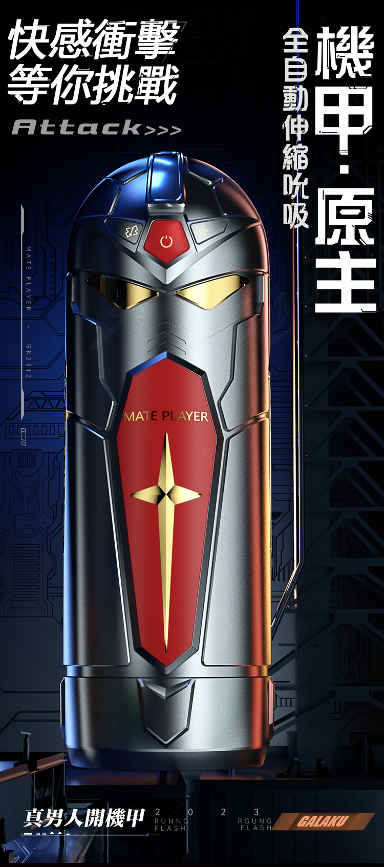 GALAKU|激甲原主 伸縮震動|智能互動飛機杯 黑