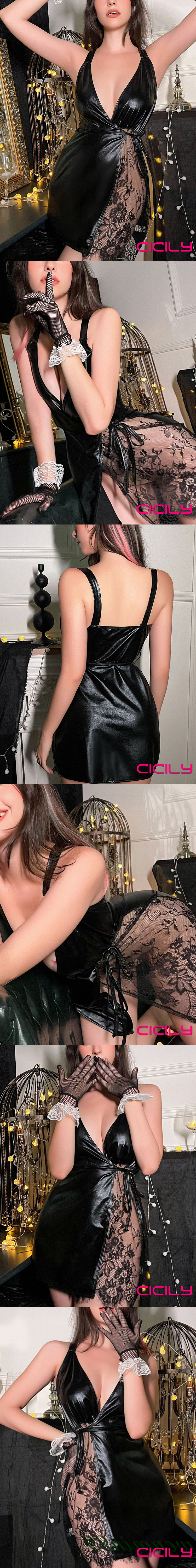 · 商品名稱:CICILY|情慾縛情|漆皮低胸蕾絲緊身包臀裙· 商品內容:漆皮衣 不含手套· 商品材質:漆皮· 尺寸:FREE SIZE,適穿胸圍32~36吋,腰圍22-32吋內· 以上為手工量測,誤差約2CM內· 商品編號:AS-0049