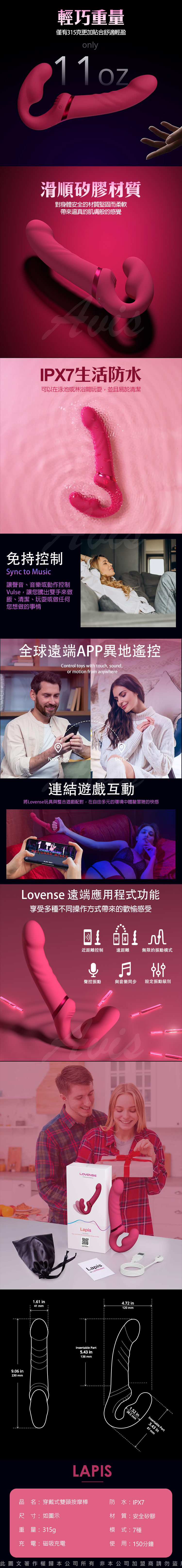 品名:Lovense Lapis|手機智能遙控|穿戴式雙頭情侶按摩棒