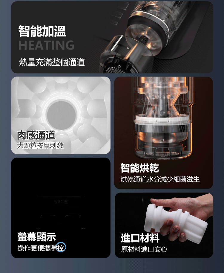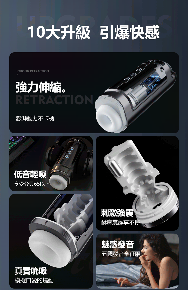 功能特點: 伸縮,吮吸,震動,發音,加溫