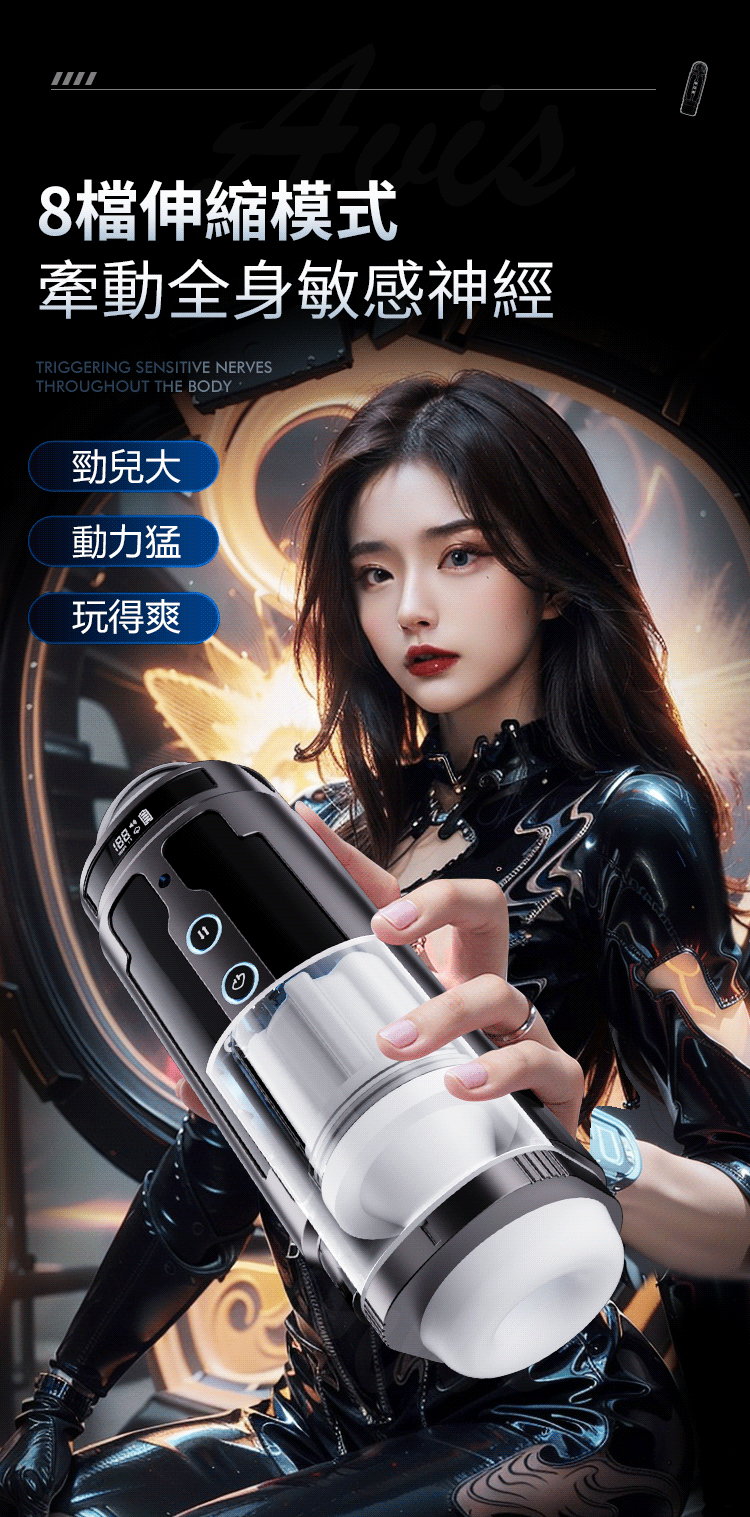 8檔伸縮設計,為您帶來更加真實的感受。隨著伸縮功能的啟動,您可以感受到飛機杯仿佛活生生的在您手中與您共鳴,帶來一種前所未有的刺激感受。
