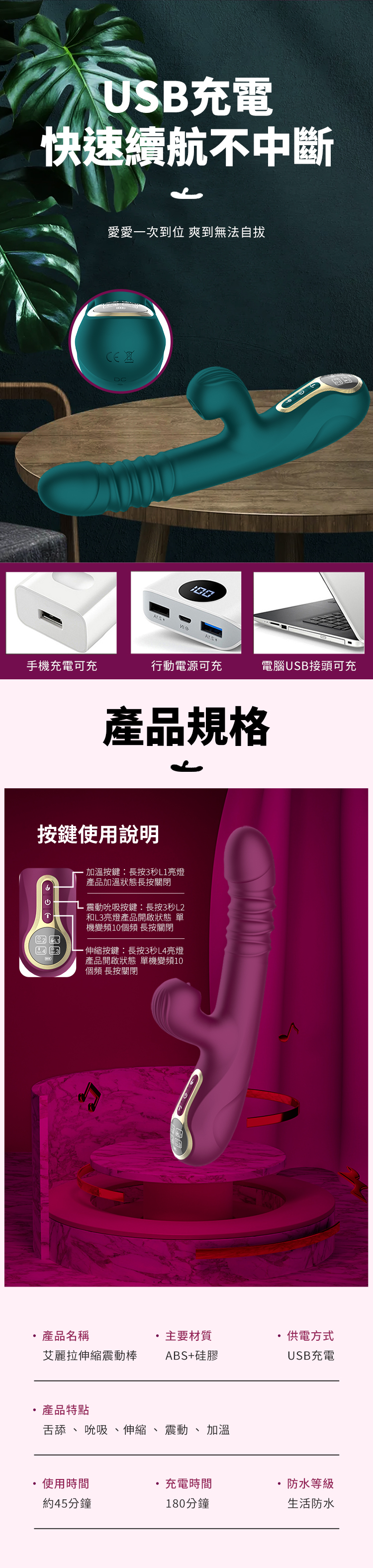 產品名稱:艾麗拉 智能顯示 伸縮舌舔按摩棒