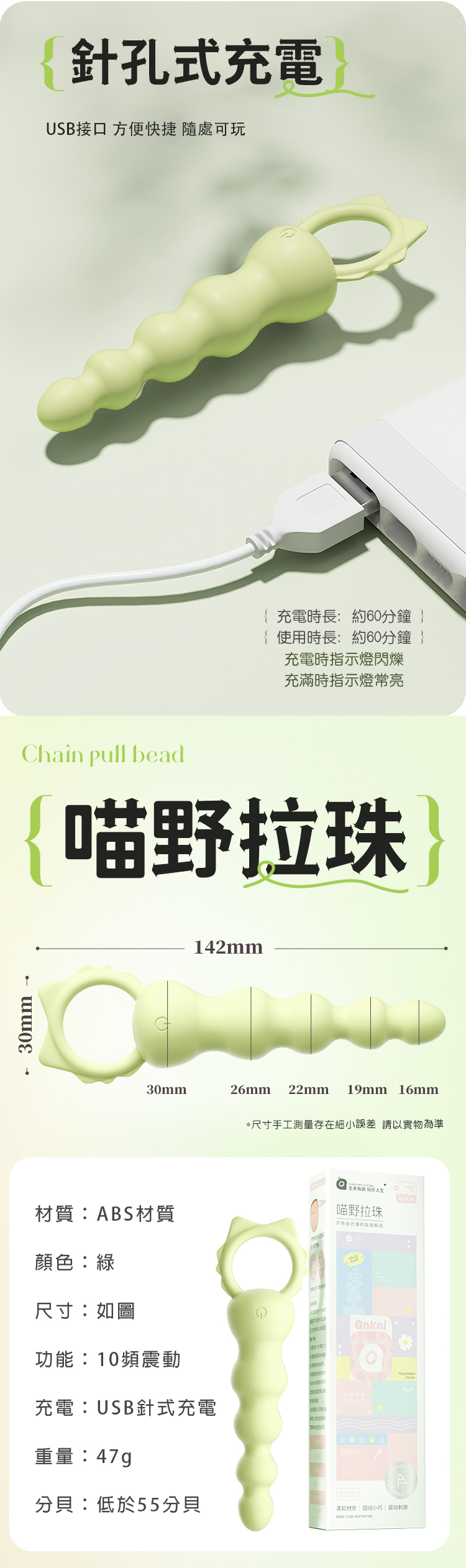 商品名稱:謎姬|喵野激震拉珠|拉環肛塞