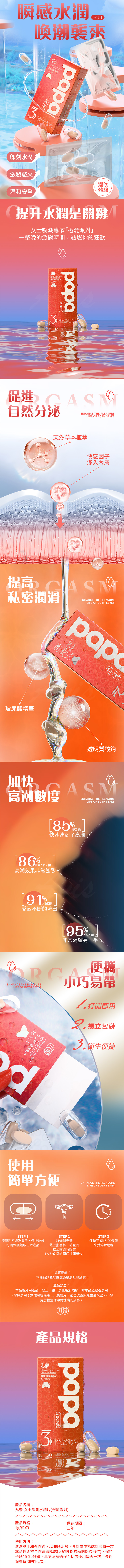 品名:女士喚潮水潤片|橙澀派對款 1gX3粒