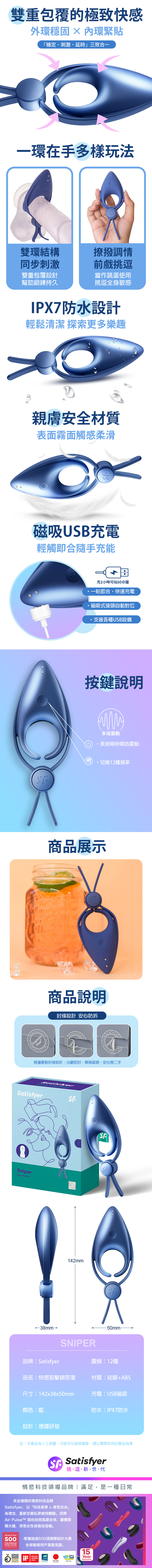 品名:Sniper 快感狙擊 可調節男士精力雙環
